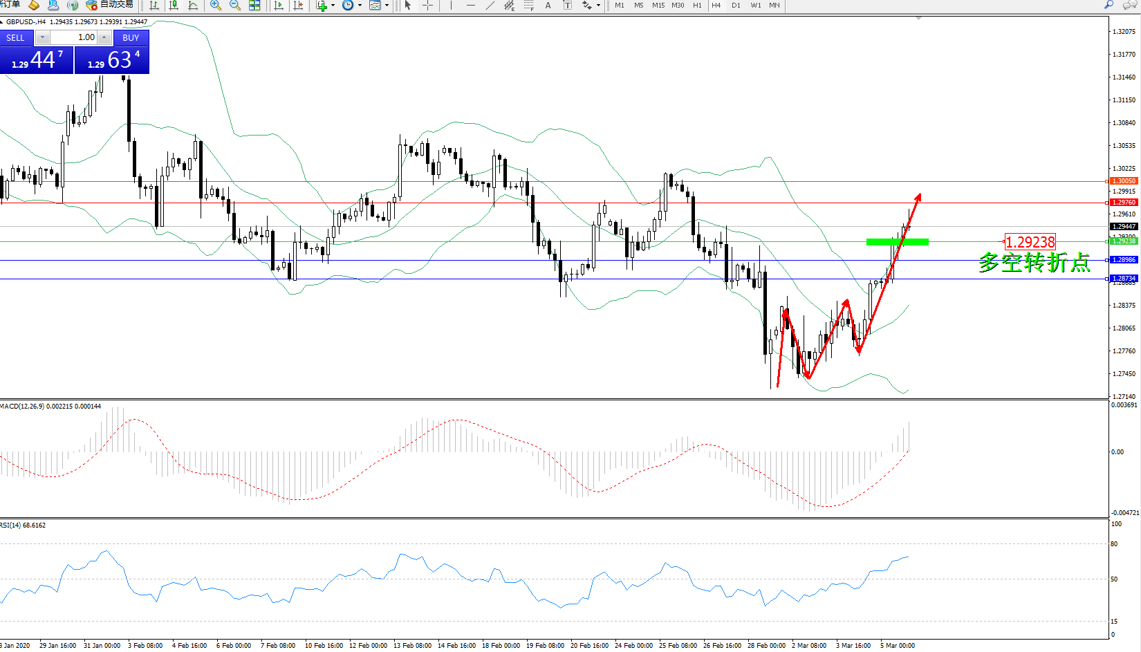 交易策略:1.29238上方看涨,目标1.297601.30050