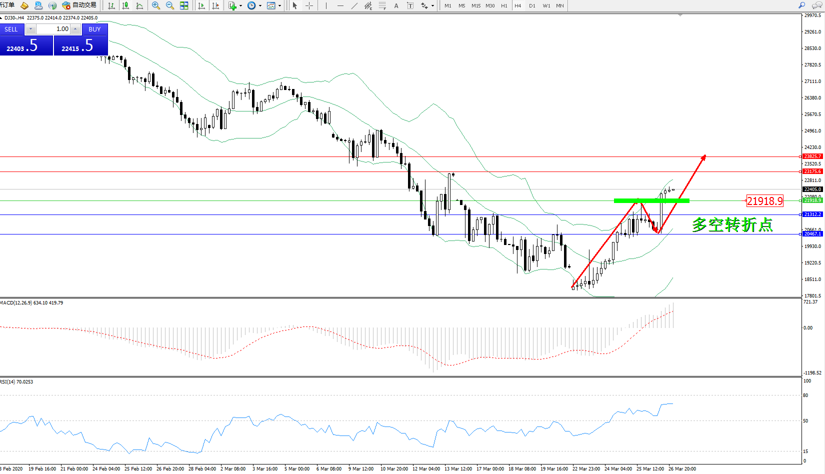 交易策略:21918上方看涨,目标23175、23825