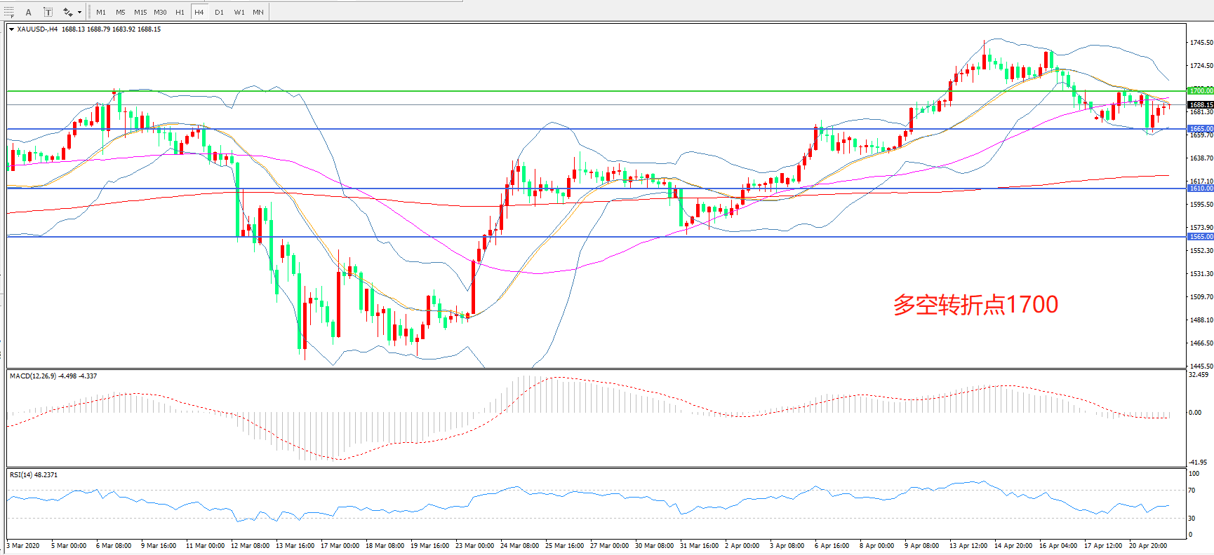 交易策略: 在1700.00 之下看跌,目标1665.00 1610.00