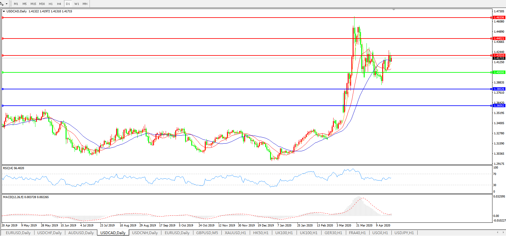 交易策略: 在1.4000之上,看涨,目标价位为1.4200、1.4400