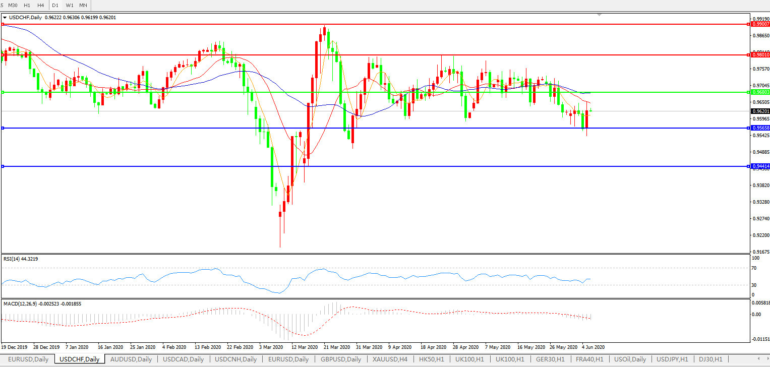交易策略:0.9680下方看跌,目标0.9565、0.9440
