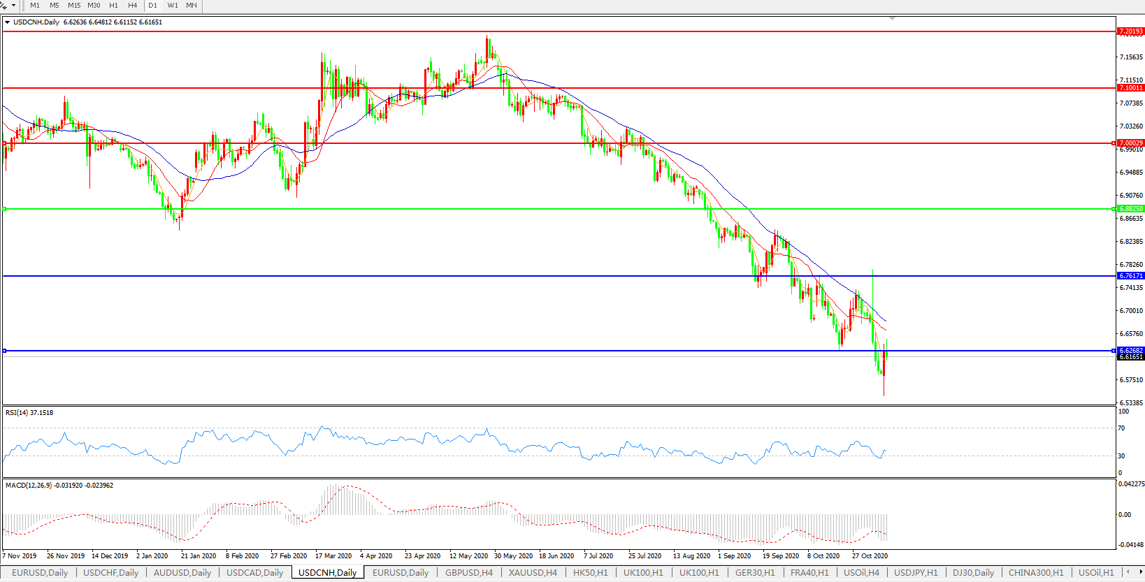 人民币兑美元即期周一收升487点至6.5728元,中间价涨167点,两者均创逾28个月新高;离岸人民币盘中升破6.55关口,亦创出2018年6月26日以来新高;交易员指出称,拜登政府依然面临疫情困扰,财政和货币双宽松不可避免,美指大概率延续偏弱走势,这也会加大资金流入新兴市场; 美国当选总统拜登周一将召集冠状病毒应对工作组开会,研究他在1月上任时将面临的首要问题;特朗普则试图保住自己的总统职位,尽管希望不大;拜登的竞选团队也在敦促美国联邦总务署(GSA)署长批准正式交接权力;招商银行金融市场部首席外汇分析师李刘阳认为,考虑到民主党可能无法获得参议院多数席位,美联储预计将在未来更多利用货币政策支持美国经济,这将会使美元的弱势期持续很久;