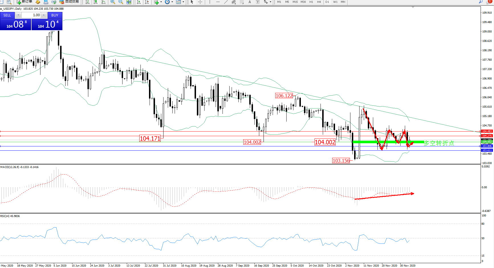 美元兑日元涨0.31%至104.16,受到美国国债收益率上升和投机账户交易的提振;日元汇率本周基本持平,在G-10货币中表现最差。只要美元兑日元的反弹不升破105.29关键阻力位,其下跌趋势就将延续下去,而下方如果最终失守此前多次在此处化险为夷的103.65关键支撑位,那么就可能进一步跌向11月初美国大选投票日后录得的低点103.18;进一步失守后将奔向3月份时的年内低点101.19。美元整体颓势趋势仍将延续,因而,至少在年底之前,美元兑日元更可选择突破的方向将是下行而非上行。日本共同社:本财政年度日本政府债券发行量超过100万亿日元,日本首相菅义伟:低收入单亲家庭将获得5万日元设立规模空前的2万亿日元基金,在未来10年内支持创新型企业。