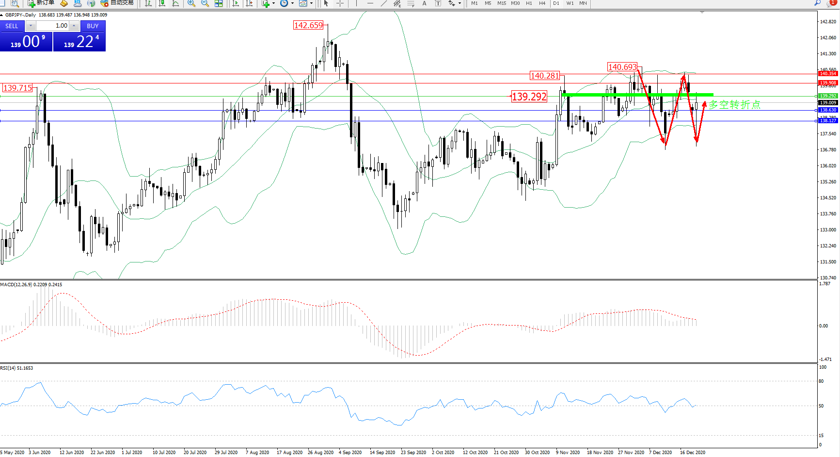 英镑兑日圆底部回升至139.009附近徘徊,因英欧谈判人员周末未能达成协议,加大了英国在年底无协议退欧的风险,且新毒株直接导致英国伦敦与东南部城市再度陷入封锁状态,这种负面人气掩盖了美国国会就9000亿美元新冠援助法案达成协议的影响。欧盟在英国海域的捕鱼权仍是英退谈判的一个症结。市场高度押注英欧年底前达成协议,若无协议脱欧将引发英镑灾难式崩盘;考虑到此前市场行情已经提前计入了英国与欧盟赶在年底大限前达成脱欧协议的前景,因而如果协议在未来两周内如预期达成,英国首相约翰逊表示将召集内阁会议商讨旅行安全问题,同时欧盟官员此前也表示针对英国的“禁飞令”不会持续太久。因英国在发现传染力据称提升了70%的新病毒株之后被迫在东南部地区启动了四级封锁措施,这令圣诞新年消费活动料遭彻底窒息,并叠加在英国脱欧谈判仍无进展的悲观消息之上,令市场情绪变本加厉恶化。