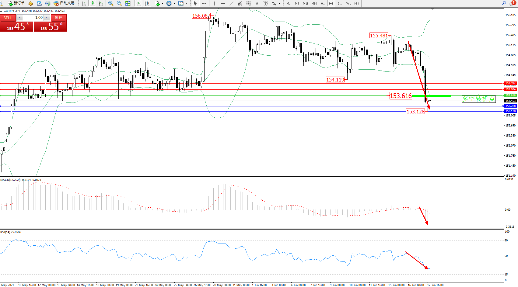 技术点评:空头动力延续布林带指标下轨附近急速下挫,跌破下轨抵达153.128位置后得到短暂支撑,开始震荡回升,短期尚未回升至下轨内侧,低位或继续维持整理至内侧后或再度向下移动,布林带指标呈张口走势持续中,MACD指标处于0轴线下方空头区域维持震荡不断向下移动,RSI指标处于50均衡线下方空头区域不断下移后开始走平;