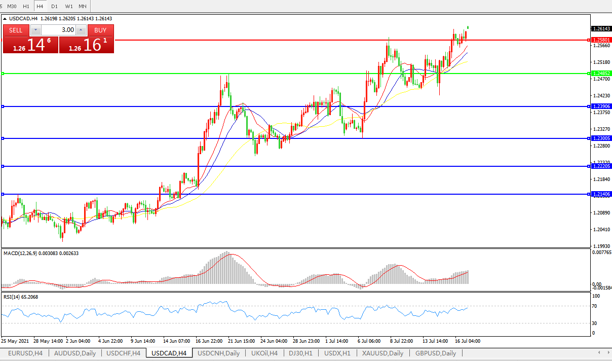 美元兑加元USDCAD 4小时图: