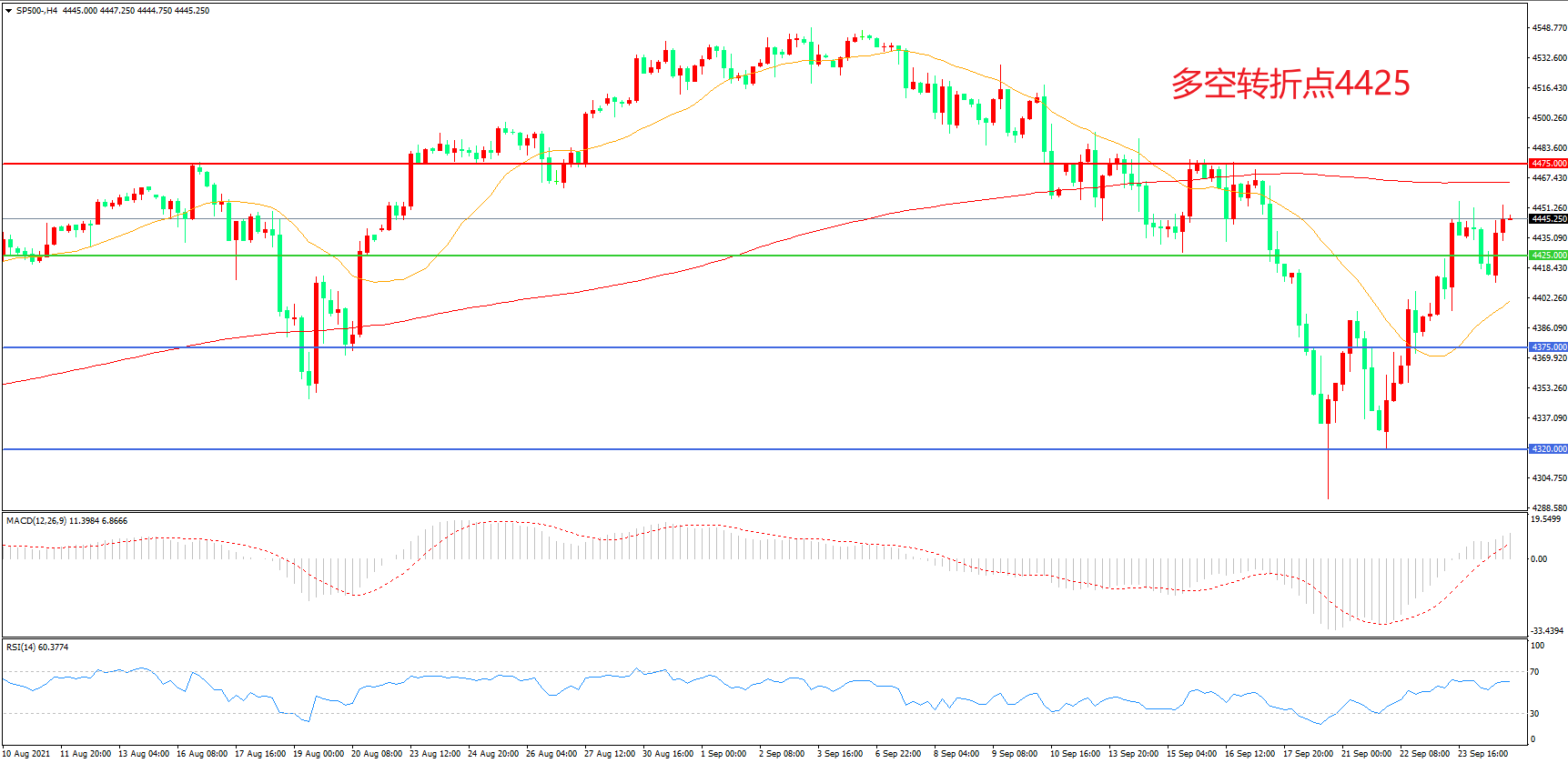 多空转折点:4425.00