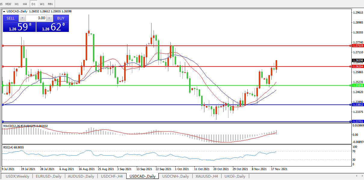 美元兑加元USDCAD 日线图: