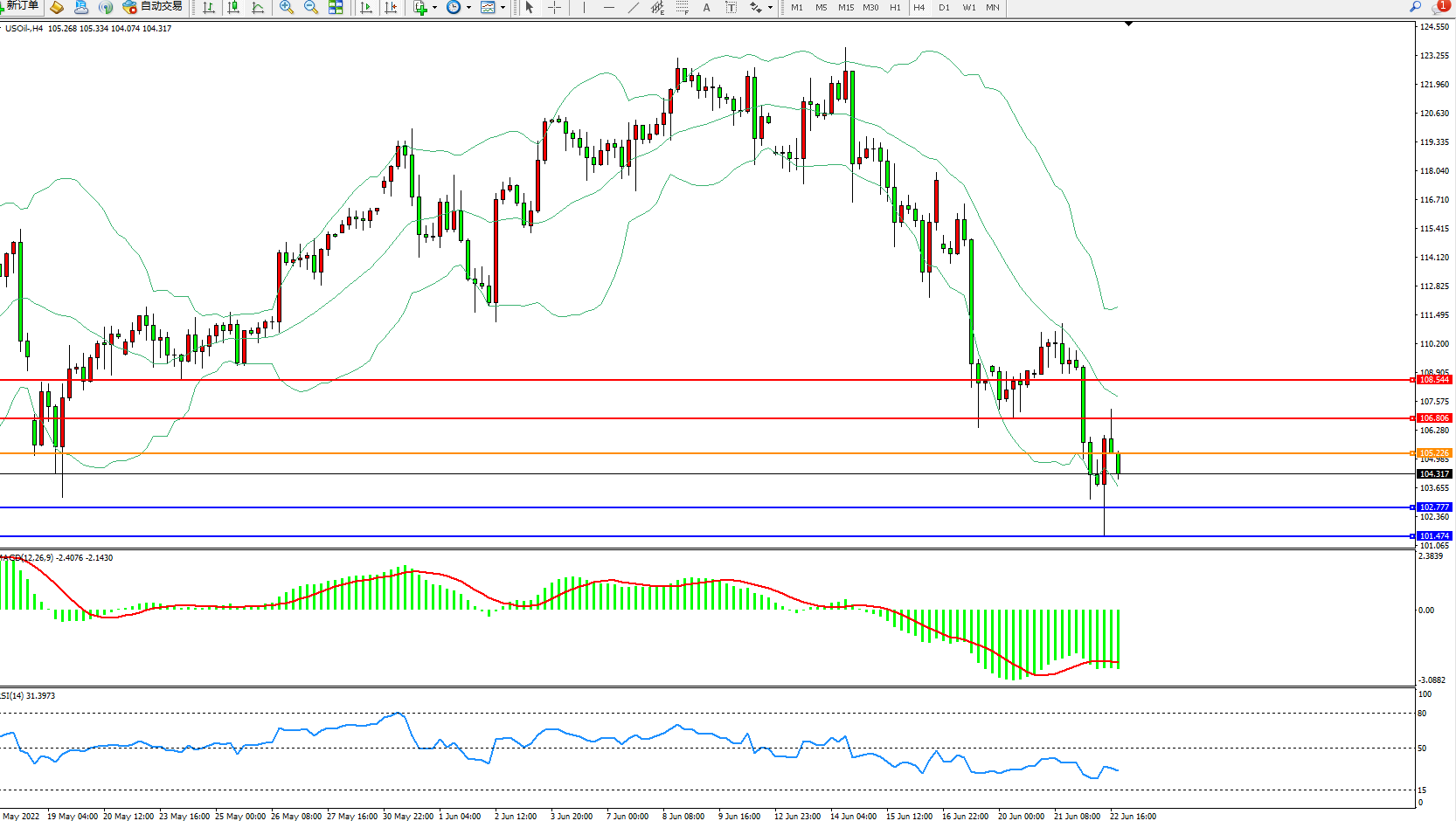 原油USOil——4小时K线图显示: