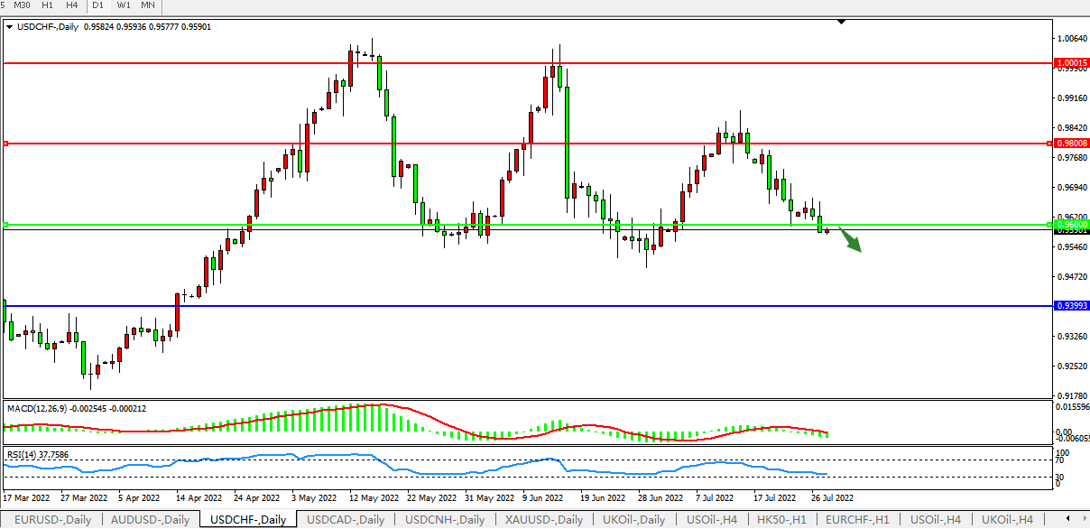 USDCHF:0.9600支撑破败 USDCHF  USDCAD