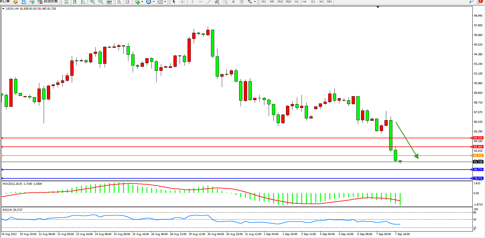 原油维持81.728附近震荡,目前油价正在下跌,在突破8月份的低点85美元/桶后止住了跌势,但在80美元/桶上方的水平,油价得不到很好的支撑。油价无法在利好消息的基础上反弹,现在已经打破了技术支撑位。市场显然担心欧洲经济急剧放缓、新兴市场遭受打击的现象。