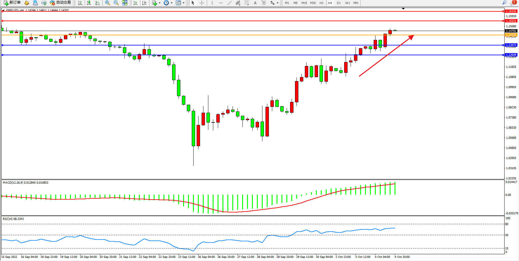 交易策略:1.14342上方看涨,目标1.15531、1.16335