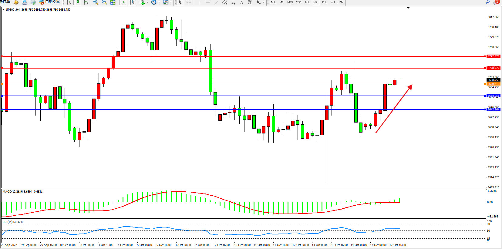 标普500指数10月17日(周一)收盘上涨95.46点,涨幅2.66%,报3678.53点;海外流动性持续紧缩,美国就业、通胀以及美联储官员表态进一步强化美联储鹰派加息预期,11月份美联储大幅加息75基点仍是大概率事 件,预计美元指数在波动中延续强势。
