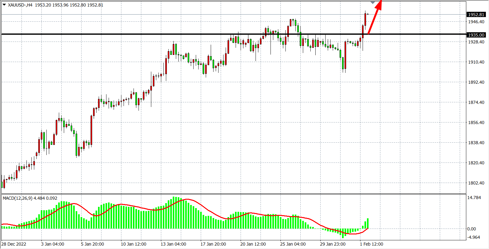 周三(2月1日)首先是“小非农”ADP数据大幅不及预期,随后周四凌晨美联储FOMC公布最新利率决议,将基准利率上调25个基点至4.50%-4.75%区间,符合市场预期,为连续第二次放缓加息步伐,同时暗示下次会议将继续紧缩。决议公布后,现货黄金短线下挫,随后抹去FOMC声明后的跌幅,并在鲍威尔讲话后大幅走高突破1950美元,刷新2022年4月22日以来新高,日内涨超1%。