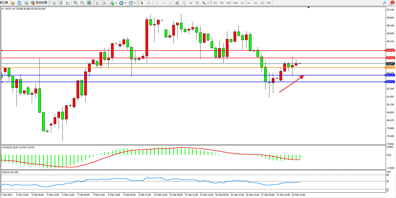 4小时图看:多头动力维持震荡上行,短期多头动力不断涌现,市场多头不断拉升,MACD指标处于0轴线下侧徘徊,RSI指标处于50均衡线下侧弱势整理;