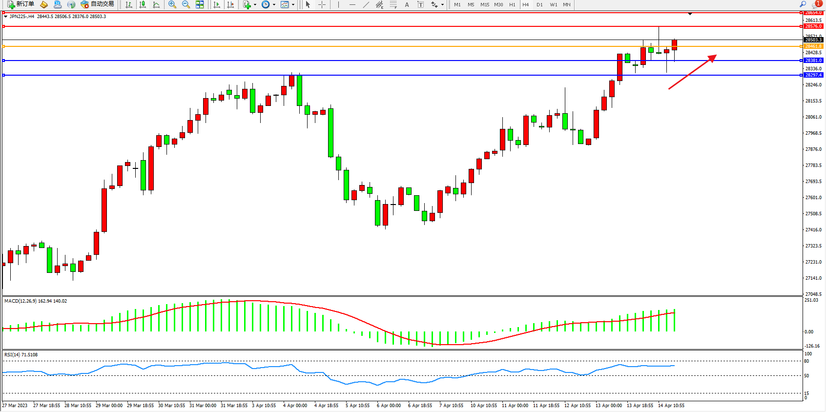日经225指数4月14日(周五)收盘上涨312.53点,涨幅1.11%,报28469.50点。日本的核心消费者通胀率目前约为3%,可能在本财年下半年回落至2%以下,日本央行将维持当前的货币宽松政策。