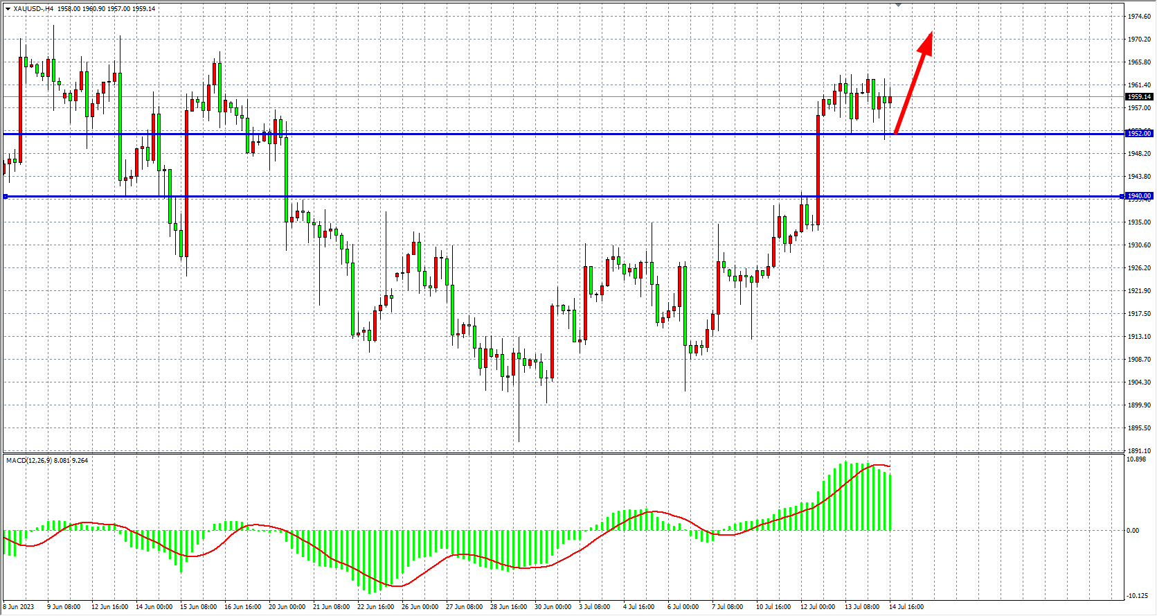 现货黄金XAUUSD 四小时图